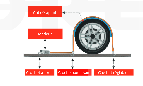 SANGLE ARRIMAGE SPECIALE VEHICULE SUR PLATEAU – 50MM -ENVELOPPE ROUE